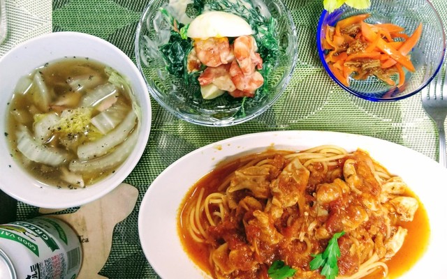 カニとトマトソースのスパゲッティ ポトフ 献立日誌